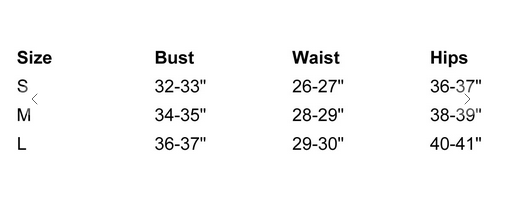 - Model's Measurements: Height 5' 7 1/2 | Bust 32 | Waist 25 | Hips 34 | size: Small